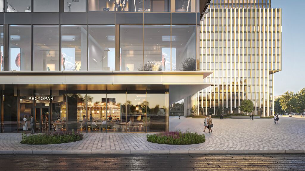Архитектура от Kleinewelt Аrchitekten. В состав проекта войдут три разноэтажные офисные башни высотой в 23, 13 и 20 этажей. Корпуса соединены стилобатной частью — торговой галереей с эскалаторами и зонами для отдыха, на крыше которой расположены выходы из офисов на террасу. Верхние этажи башен выполнены в динамичных, устремленных вверх формах. Главный вход одного из зданий акцентирован эффектной высокой аркой, которая придает фасаду выразительность и гармонично интегрирует комплекс в городскую среду. Пространство также включает в себя продуманную систему озеленения с прогулочными маршрутам, многофункциональные зоны отдыха, а также современные павильоны для работы на открытом воздухе.