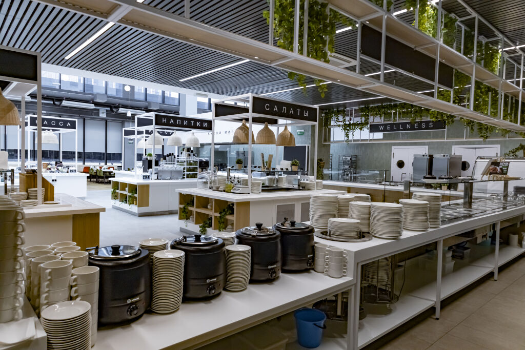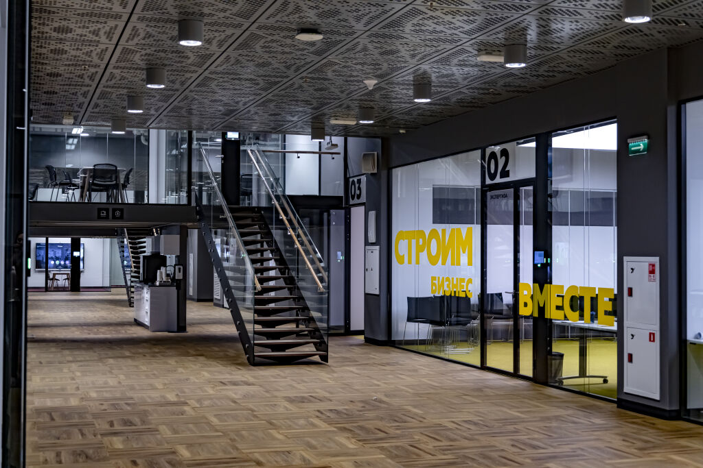 Для формальных встреч и видеоконференций предусмотрены переговорные комнаты на разную аудиторию — от 2 до 150 человек. Гибкость пространства позволяет легко изменять его площадь с помощью мобильных перегородок, создавая адаптивную среду для эффективного сотрудничества.
